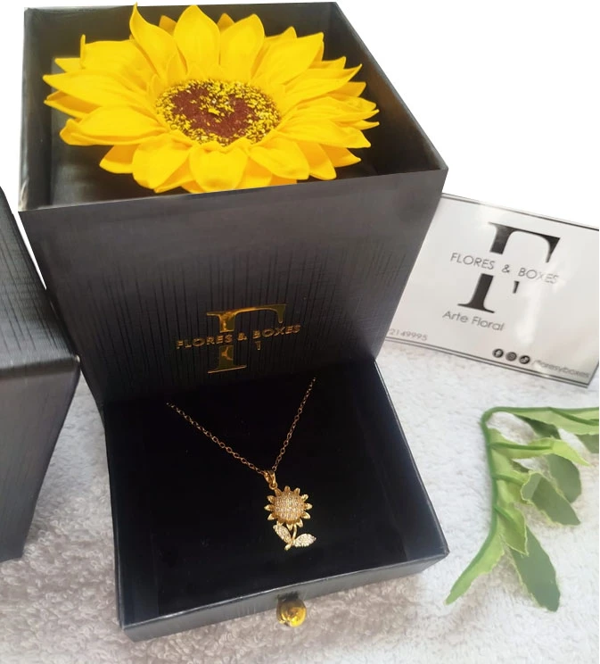 🌻 Set Regalo Exclusivo – Girasol de Pétalos de Jabón + Collar con Dije Mágico Giratorio